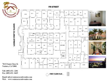At Ventura Executive Suites, we feature full-service, flexible office spaces in a professional and prestigious setting designed specifically for the needs of growing businesses. Located in the peaceful downtown community of Ventura, and housed in a beautiful Spanish style building. We are close to the freeway, walking distance to bistros and shops, and right next to the post office. Ventura Executive Suites provides the professional image your business needs. Call and ask about our office rentals today! Our suites are all-inclusive. Everything you need to run your business is provided by Ventura Executive Suites such as business address, mail-handling, professional on-Site management, paid utilities, janitorial services, access to conference rooms, printer / fax room, private parking lot, private gym, onsite shower, and a fully stocked kitchen with community fridge, filtered hot & cold drinking water, vending machines, free coffee, sugar, creamers, and teas for yourself or your clients! Ventura Executive suites provides waiting areas through out the entire building with cable TV for your clients to enjoy while they wait. Full time receptionist is also available greet and direct your clients.